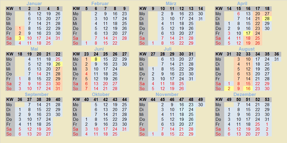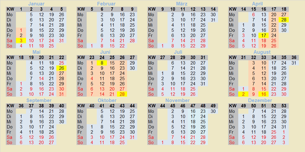 In diesen Kalender werden alle Buchungen und Reservierungen für das Jahr 2026 eingetragen. Eine orange Markierung zeigt eine bestehende Buchung oder Reservierung an. An- und Abreisetage sind gelb markiert. Die Verfügbarkeit kann unter der Rufnummer 04362-2623 (Borsum Vermietung GmbH) erfragt werden.